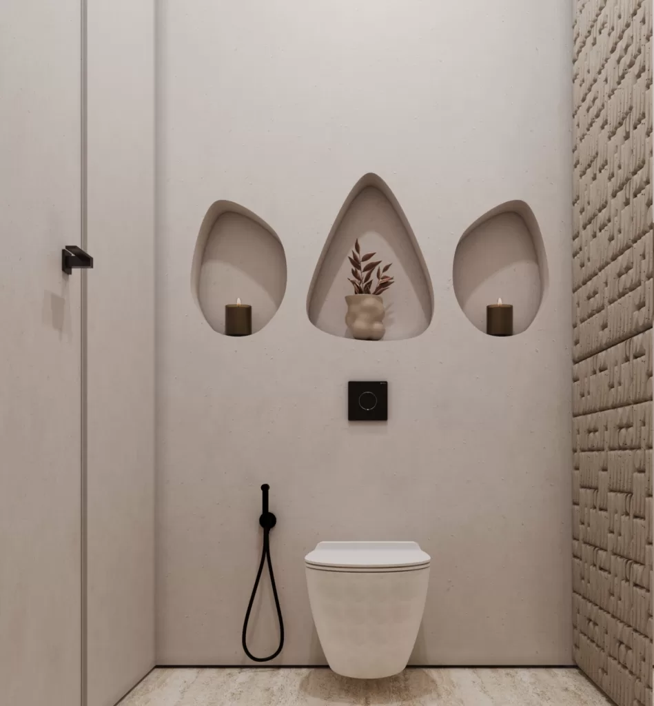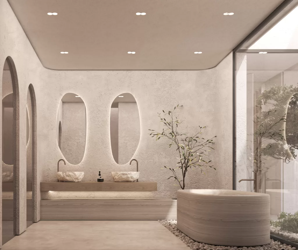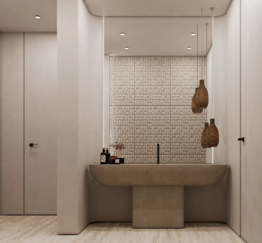 Compact yet expressive, the powder room is a study in refined simplicity. Travertine walls, soft indirect lighting, and precision detailing create an intimate and elegant atmosphere. Every material and finish is selected to highlight craftsmanship, demonstrating how minimal design can convey depth and character.