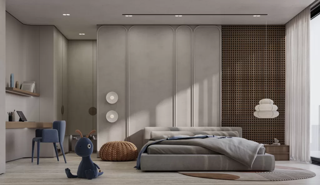 Each bedroom maintains a consistent language of calm and continuity while offering unique character through subtle material variations. Natural finishes, soft lighting, and tailored furnishings establish a sense of ease and belonging. Designed for both function and aesthetic longevity, these spaces reflect a refined approach to personal comfort within modern residential architecture.