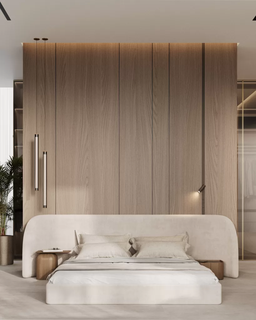 This master suite, designed by MEMAR Architecture, envelops you in soft textures, natural light, and warm wood tones, creating a soothing retreat where elegance meets pure comfort.